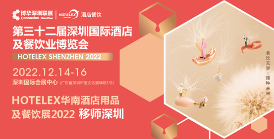 大势所趋和品牌战略加持下,第三十二届深圳国际酒店及餐饮业博览会将于 2022 年 12 月 14 -16 日,在深圳国际会展中心(宝安新馆)荣耀启幕。HOTELEX在深圳诚挚地向您发出邀请,与您相约深圳!