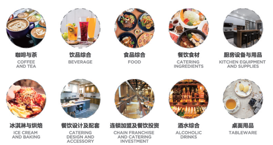 展品展示将基于传统拳头板块,贴合近年市场趋势和地区特色,在大农业、自有品牌、餐饮设计、餐饮连锁加盟投资等领域进行多维度拓展,全面展示行业新概念、大热点,以及酒店餐饮业标准化、智慧化、品牌化等特色展品,引导行业向质量提升、向智慧服务升级等方向迈进,打造出涵盖咖啡与茶、饮品综合、厨房设备与用品、冰淇淋与烘焙、食品综合、酒水综合、桌面用品、连锁加盟、餐饮设计以及咖啡茶饮节、美酒美食节等细分类别的食饮殿堂,他们所在的9-16号各馆均各有看点。
