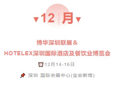 2022 年 12 月 14 -16 日,上海博华将同期举办第三十二届深圳国际酒店及餐饮业博览会,在深圳国际会展中心(宝安新馆)荣耀启幕。2022年首度挥师深圳,HOTELEX诚挚地向您发出这份邀请函,与您相约深圳!