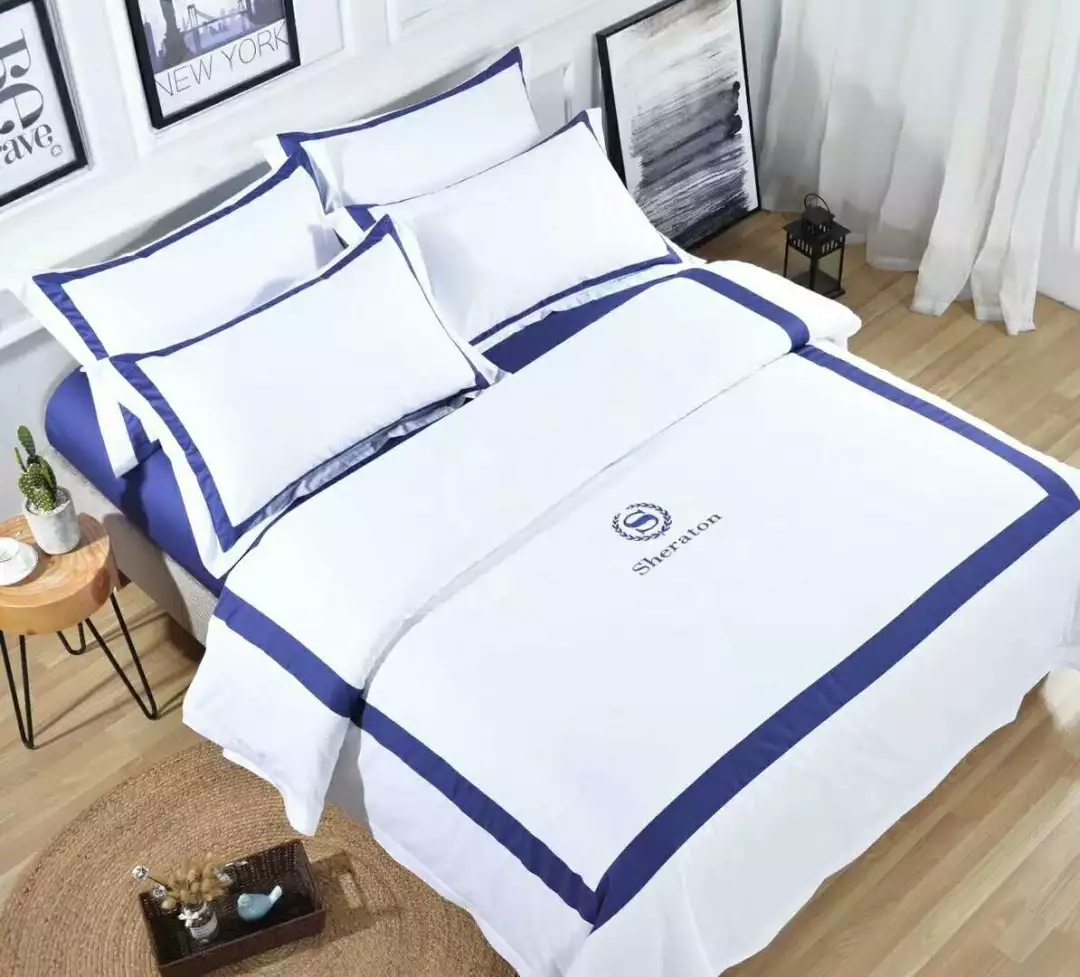 酒店布草工厂店:酒店被套床单枕套、高档印花绣花支持订做免费设计logo款式、布料制作工艺自选、颜色款式自选,各种尺寸材料床上棉品、毛巾浴巾浴服,大量现货。